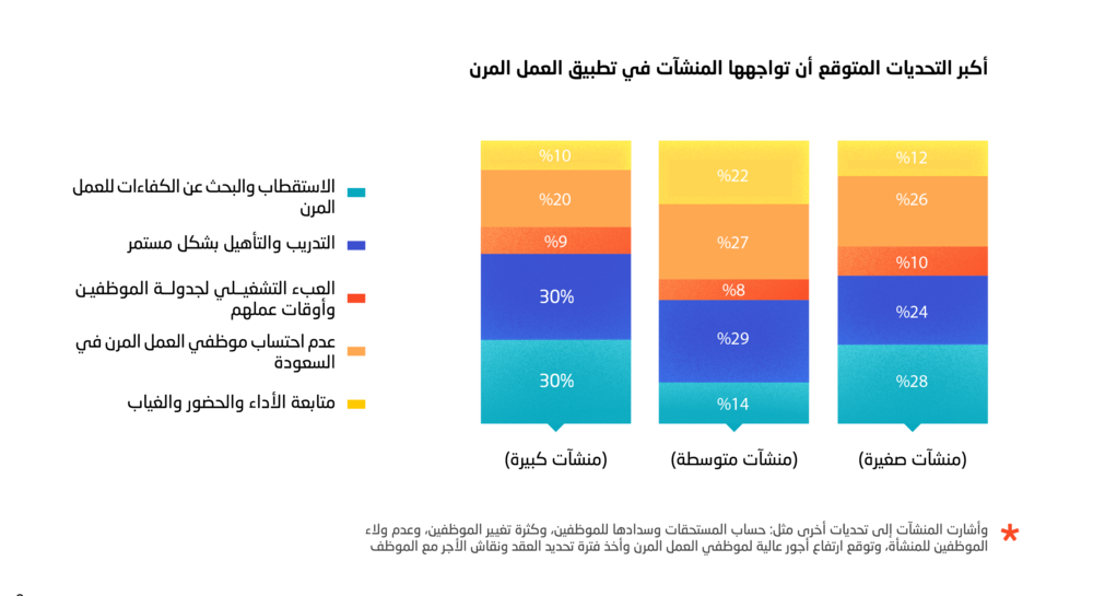 التقرير يتضمنّ دراسة موجهة لأصحاب الأعمال والمدراء أُجريت على 394 منشأة سعودية في مختلف القطاعات للتعرّف على رأيهم بالعمل المرن ومدى جاهزيتهم لتطبيقه في منشأتهم.