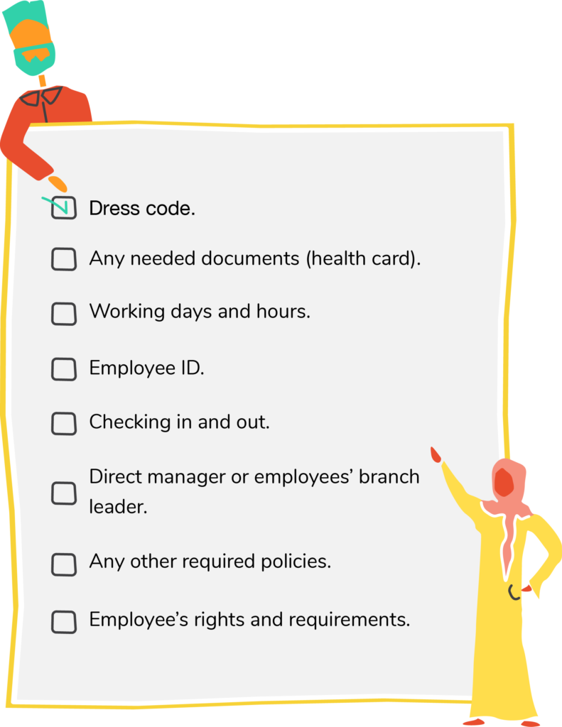 - Employee’s guide, it should cover the following checklist: