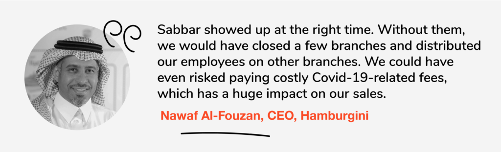 Nawaf Al Fawzan, CEO of Hamburgini, noticed an increase in sales at the end of 2020, especially in key branches. To maintain operational stability, Hamburgni had to act fast and hire staffers to fulfill cashier, host, temperature screener, and crew member roles as soon as possible.