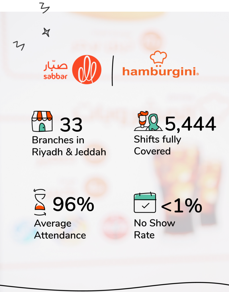 Using Sabbar’s technology for hourly staffing allowed Hamburgini to reach its target sales and increase its revenue. Not only that but by transferring part of their staffing efforts to Sabbar, Hamburgini was able to focus on expanding and increasing its branches from 60 to 80 in 2021 and thus achieving their long-term company goals.