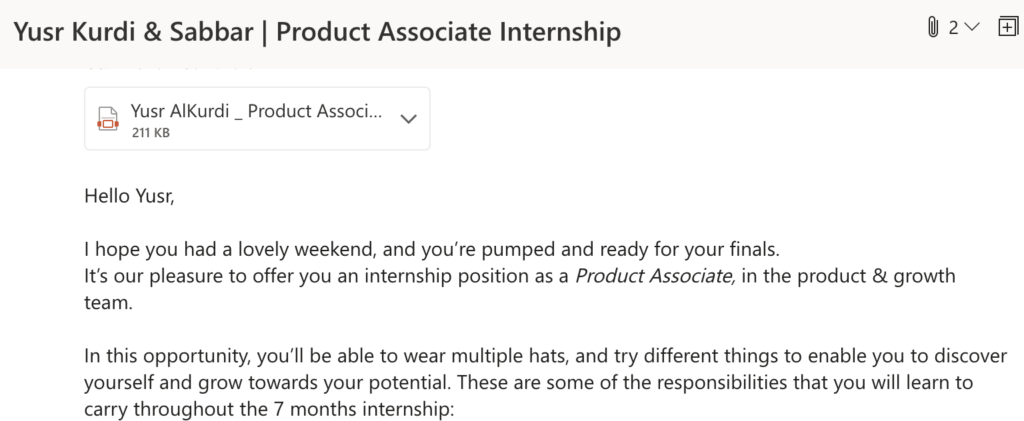 Months have passed so fast and it was the time to do my internship presentation to the university, and start searching for my first real job 💼 But, I got this email: